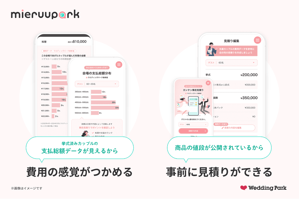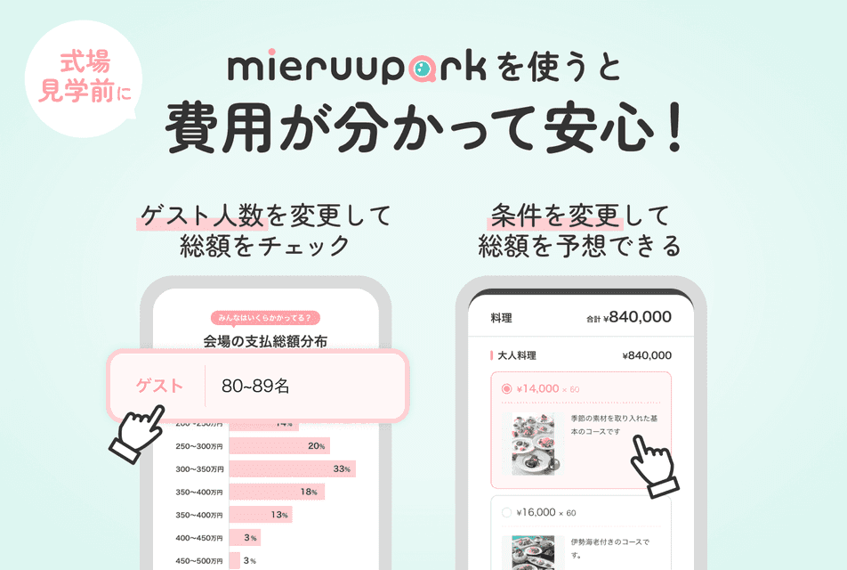 南青山ル・アンジェ教会では、式場来館前におふたりで結婚式費用をシミュレーションできる「mieruupark」というサービスを導入しています。