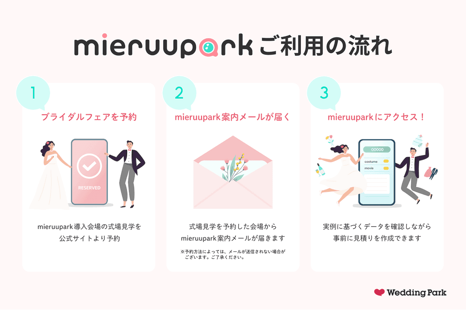 公式サイトよりブライダルフェアのご予約をいただいた方にmieruuparkのご案内を差し上げております。
